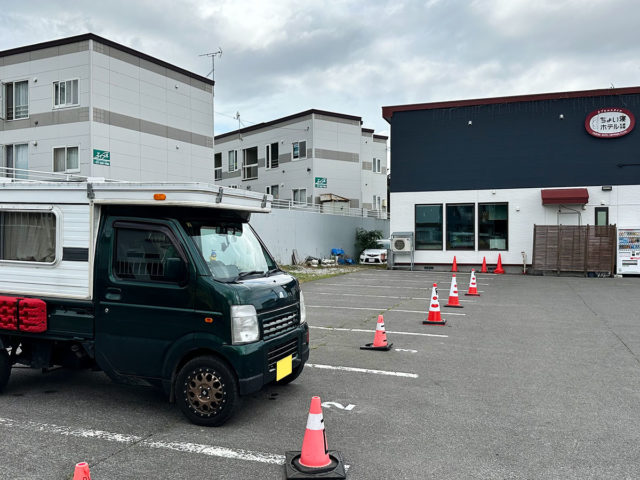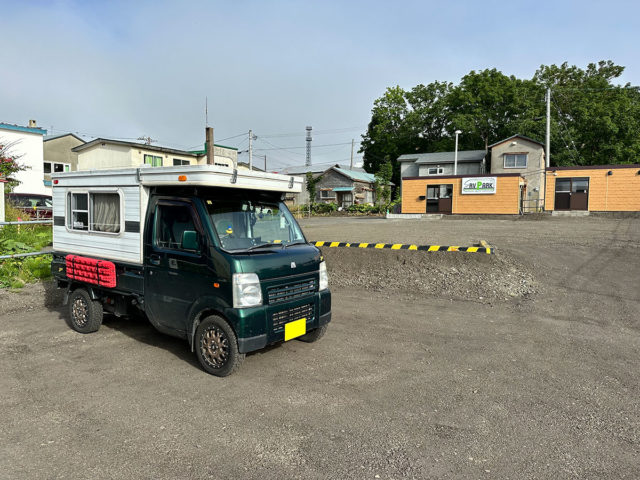 札幌市街地と小樽市のほぼ中間、国道に面したカプセルホテルの駐車場にある、滅茶苦茶アクセスの良いRVパーク。いわゆる「街中RVパーク」なので、アクセスの良さ以外に、周辺の街中観光、例えば洋食・カレー・中華・麺類なども豊富で、手ごわい好き嫌いの激しい方でも問題ありません。
