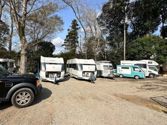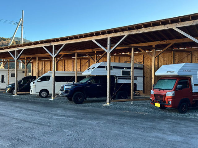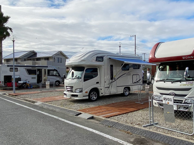 - 1泊1台につきにつき3,000円(幅2.5m以上のアメリカンサイズは場内不可)